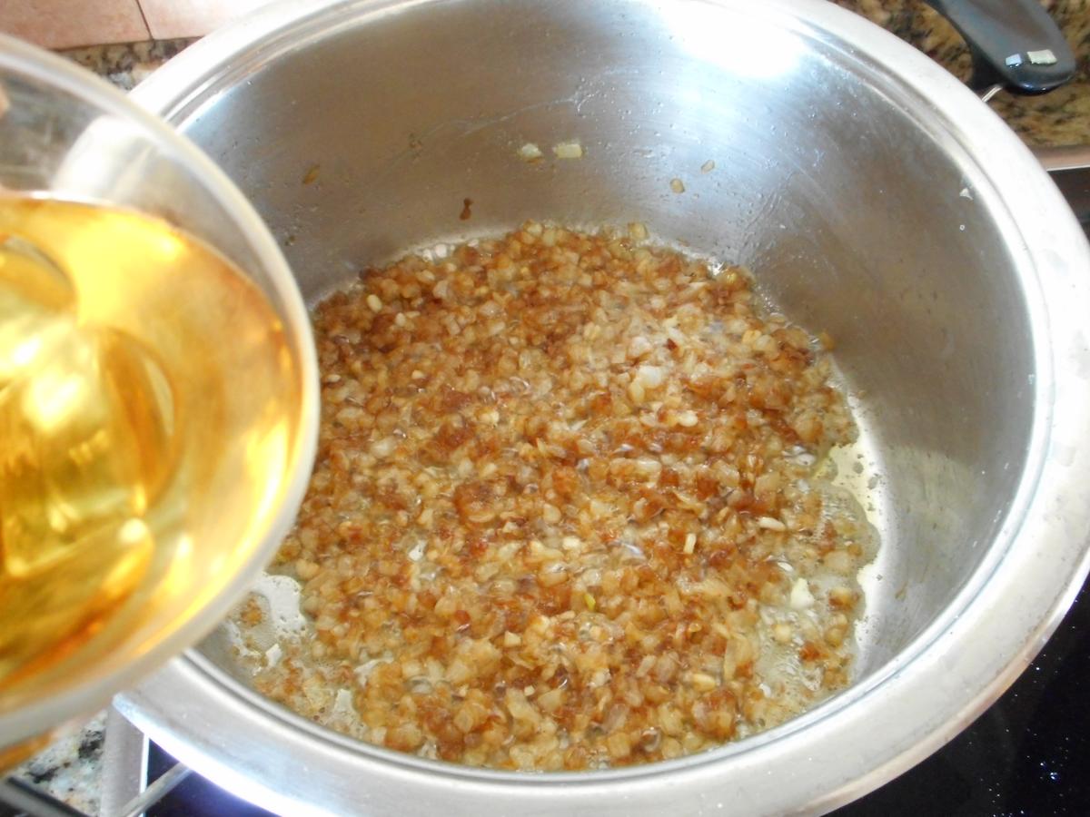 Añadir el vino, dejar evaporar el alcohol unos segundos.