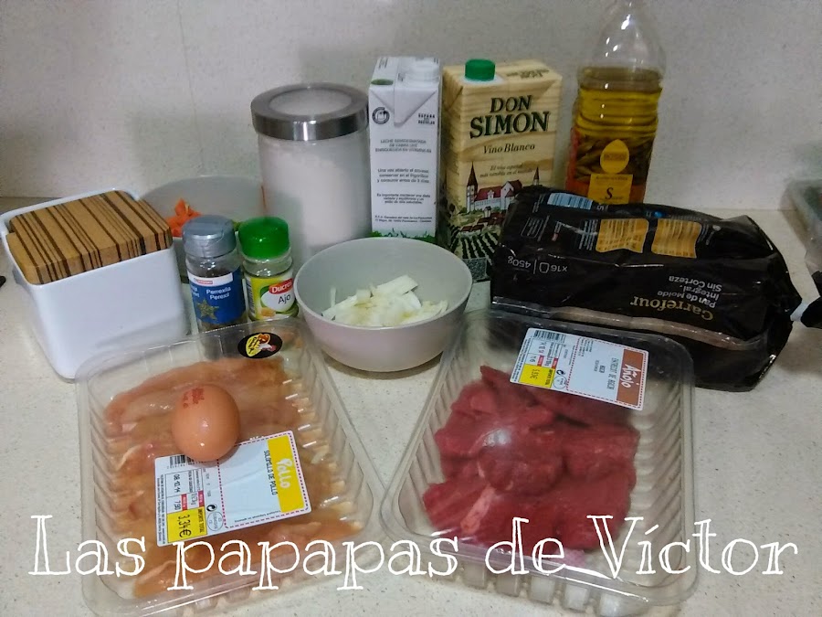 Pedís al carnicero de confianza que os pique las dos carnes o si tenéis como en mi caso una picadora la picáis; eso si dos veces para que la carne este mas fina.