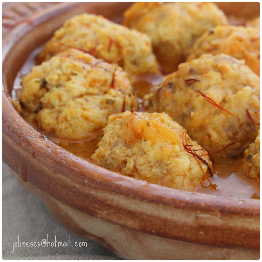 El otro día estuvimos en casa de CATALINA, nos invitó a comer unas albóndigas que quitan el hipo,nos hizo unas croquetas deliciosas y dos tartas una de plátano y otra de chocolate, todavía me relamo!! no he probado cosa tan rica. También nos regaló unas hebras de azafrán que me han encantado como quedan en los guisos, por eso he hecho estas albóndigas con las hebras de este azafrán.