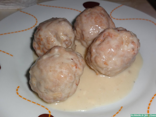 Realizamos bolas del tamaño que mas nos guste, las pasamos por harina y las freímos en aceite hasta que estén bien cocinadas. Reservamos en una fuente con papel de cocina para escurra el aceite sobrante.