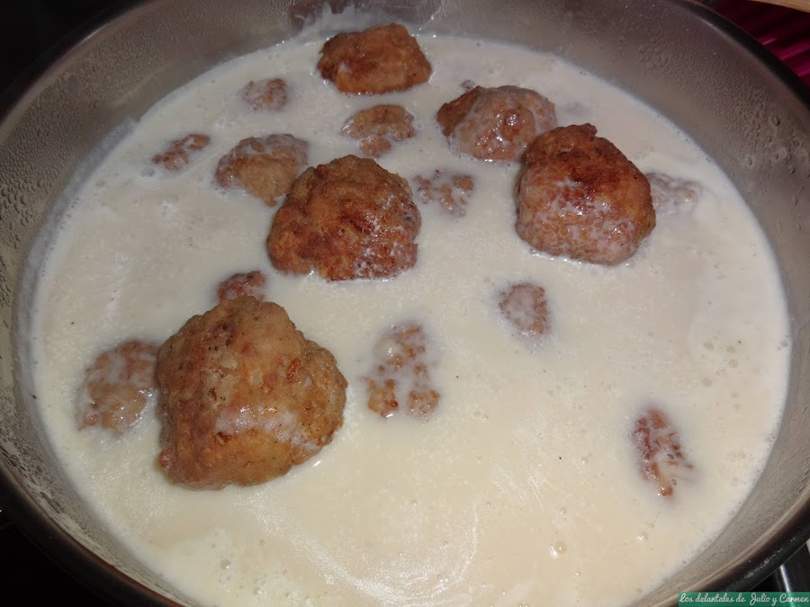 Cuando la tengamos a nuestro gusto, echaremos las albondigas y dejamos unos minutos cocinar todo junto.
