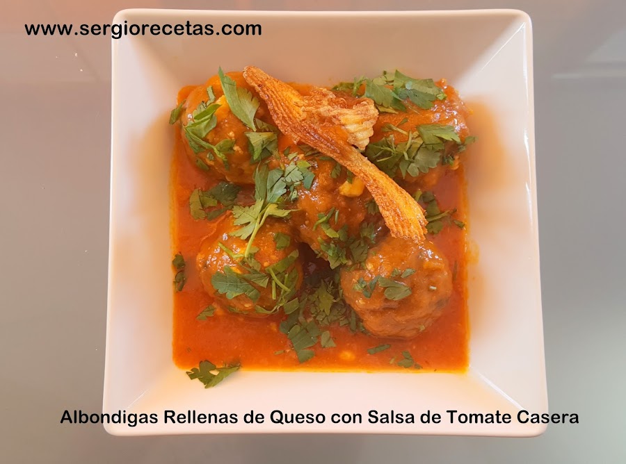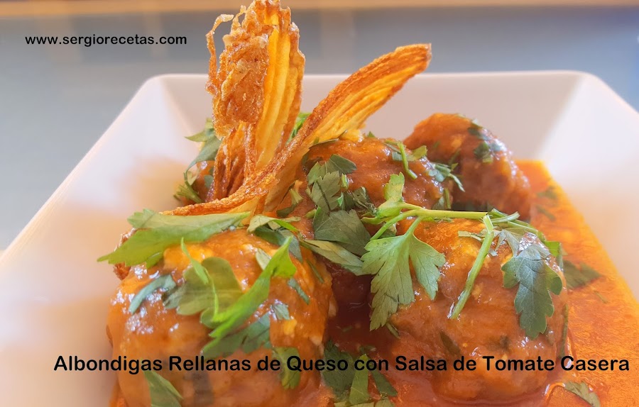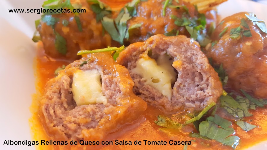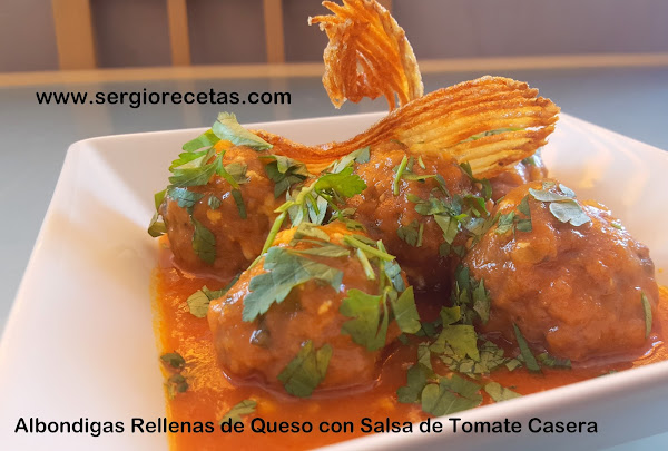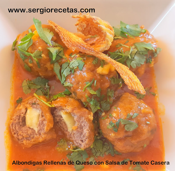 Hay una Gran tradición en todo el mundo por estas pelotas de carne que en Castellano llamamos "Albóndigas", se pueden hacer de todo tipo de carne (de cordero, de cerdo, de pollo, de ternera, mixtas, de sepia, de pescado,etc...), las posibilidades son infinitas siempre que tengamos un poco de imaginación y ganas de comer muy bien y por eso hoy os presento estas deliciosas "Albóndigas Rellenas de Queso con Salsa de Tomate Casera" que están, sencillamente, para gozar con cada bocado.