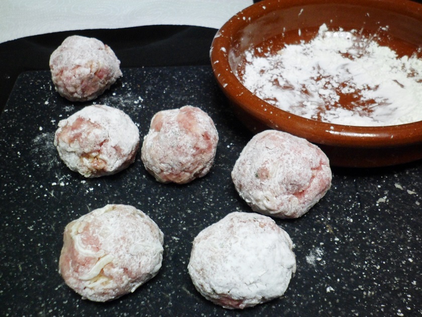 Damos forma de bola, preparamos unas cuantas, las vamos pasando por harina.