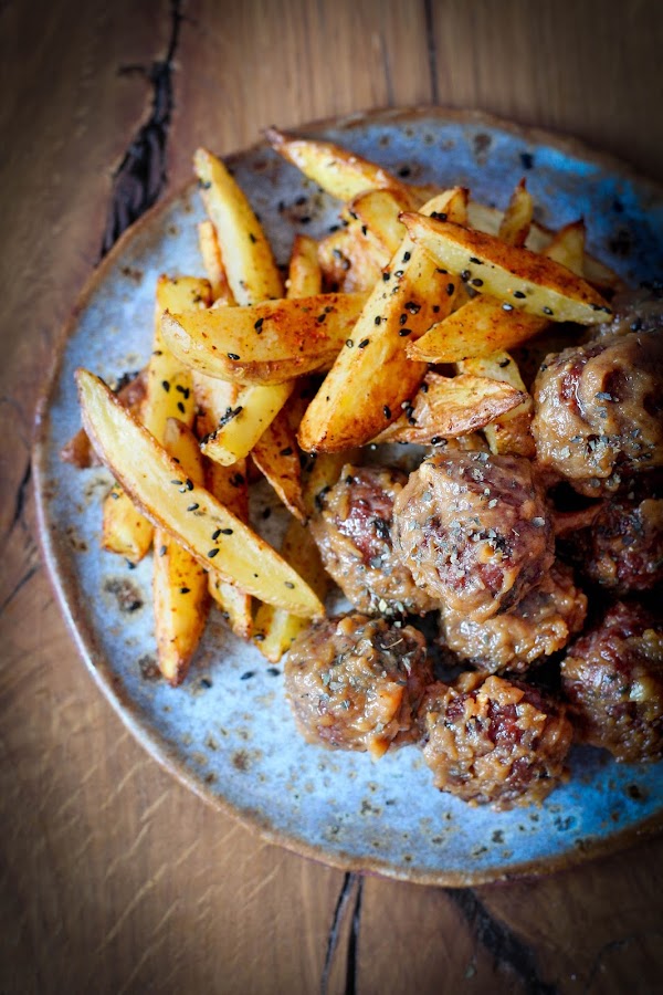 Para acompañaralas he preparado unas patatas al horno, totalmente saludables, sin nada de grasas con sésamo negro y chile. Ya sabéis que cada semana os sorprenderé con una nueva.