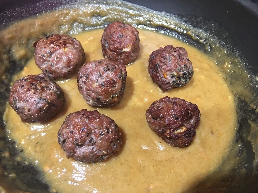 7. Retira la salsa del fuego y coloca las albóndigas sobre ella. Mezcla y sirve caliente.