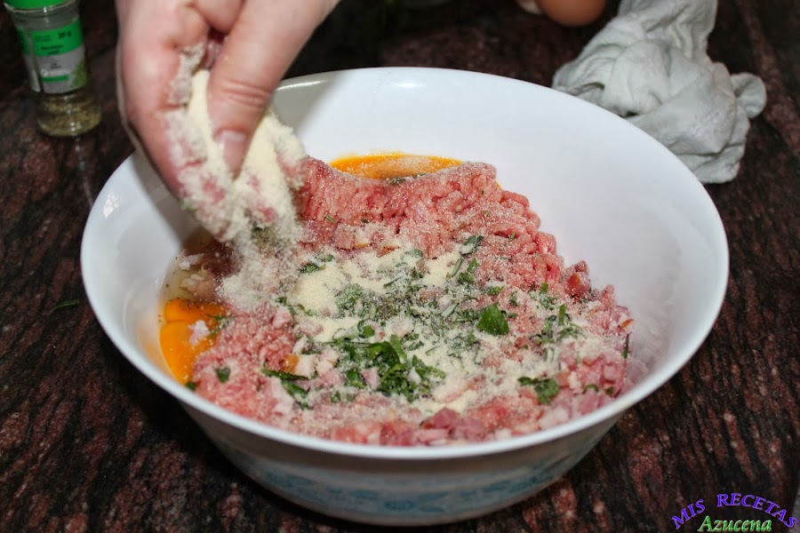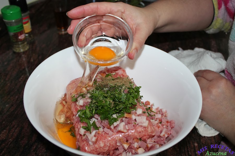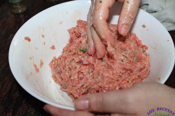 Nos prepararemos un bol, en el pondremos los dos tipos de carne picada.