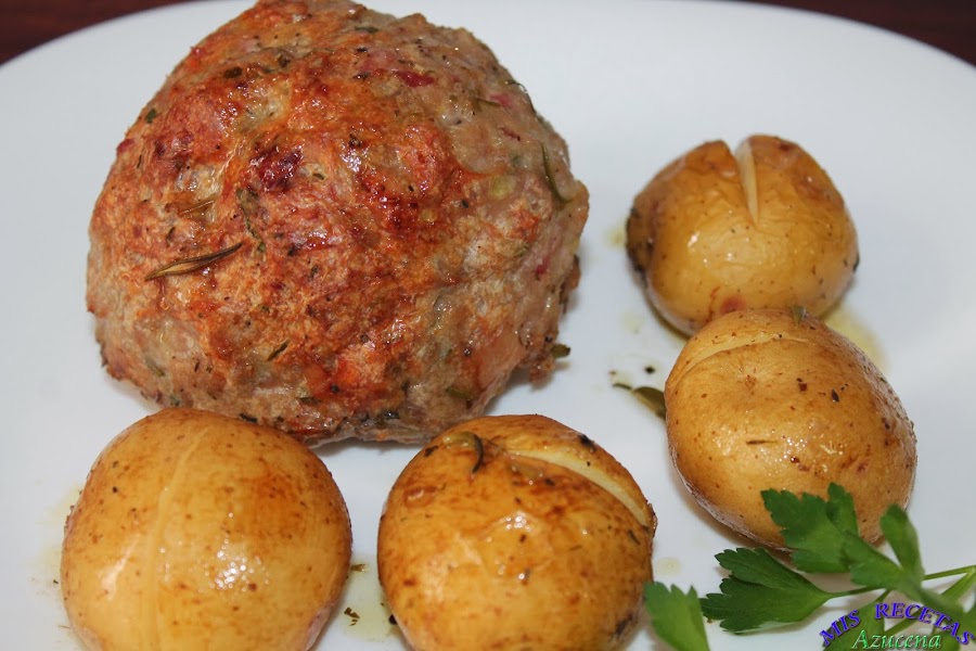 Una vez listo antes de sacar la bandeja del horno comprobaremos que las patatas y la carne este lista, las patatas tienen que empezar a arrugarse la piel y estar tiernas, la carne tiene que estar firme y dorada.