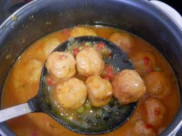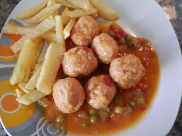 NOTA.- Podemos servir las albóndigas con patatas fritas, con arroz blanco e incluso con pasta de cualquier tipo, a vuestro gusto.