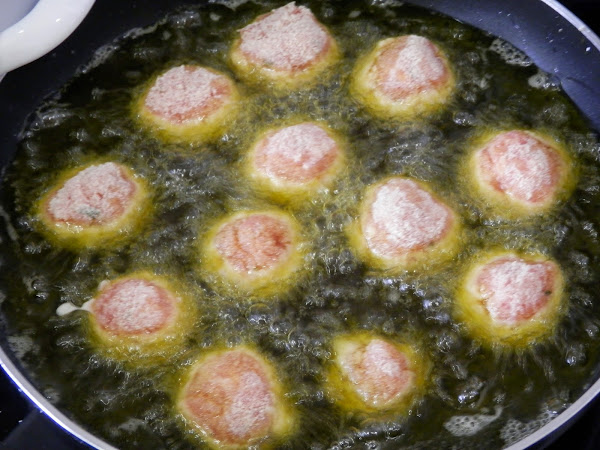 Pondremos aceite a calentar en una sartén para poder freírlas, cuando el aceite esté bien caliente las metemos dentro y las freímos hasta que queden un poco doradas por fuera y deben quedar jugosas por dentro.