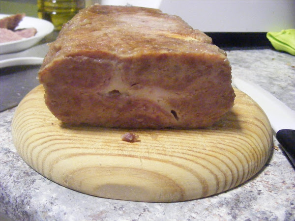 En una cacerola u olla(yo en la GME) se dora el rollo de carne,cuándo esté dorado se añade cebolla y ajo,rehogándolo todo unos minutos,se añade un vasito de Oporto y yo en el menú guiso unos 15 minutos y listo para dejar enfriar y partir más facilmente.Si no se hace en la olla eléctrica,sino en cacerola se añade agua y se deja cocer hasta que esté listo.