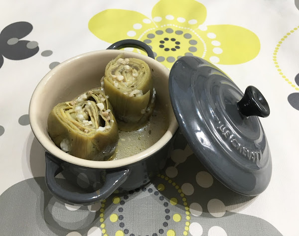 - Añade las alcachofas y un poco de agua hasta que las cubra.