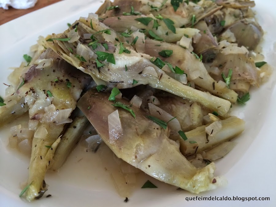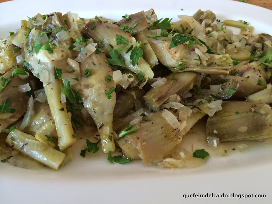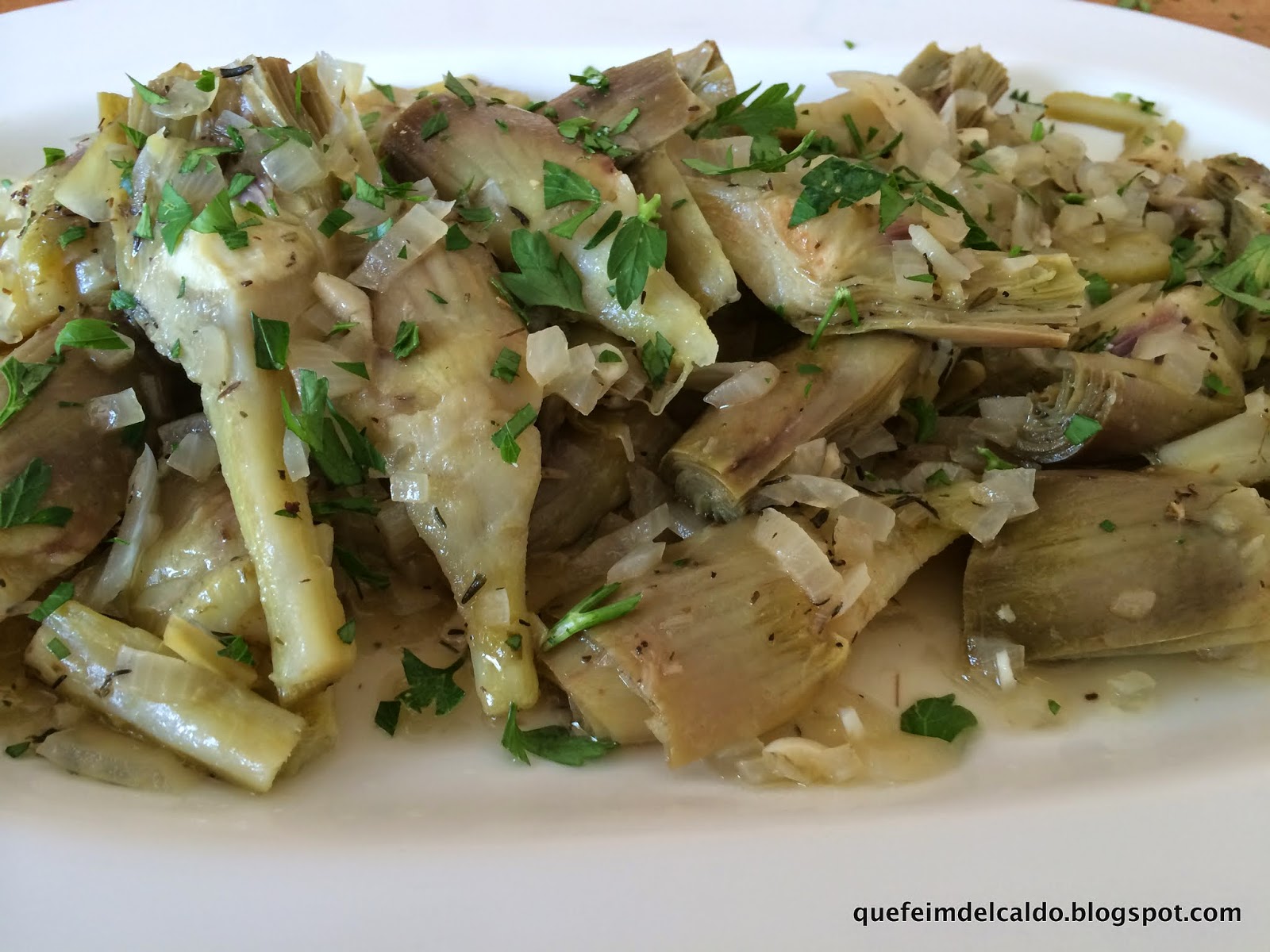 Yo la verdad me cagué en la sota de bastos, pero vi que el sitio de los tomates los habían ocupado unas alcachofas, así que me lancé a por ellas, son alcachofas francesas, no lo dudé y aquí os traigo una receta de la gran Julia Child. " ARtichauts Braisés à la provençale".