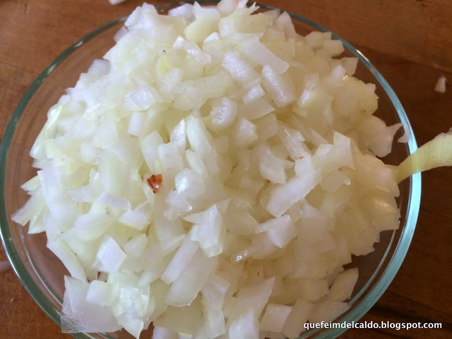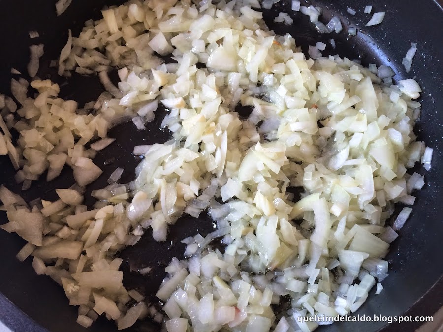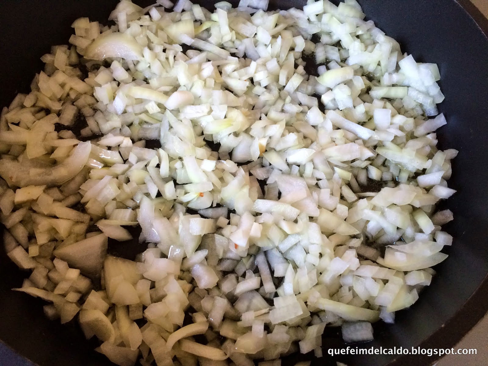 Ponemos la cebolla picada y la mantenemos 5 minutos pochandose a fuego lento 5-9.