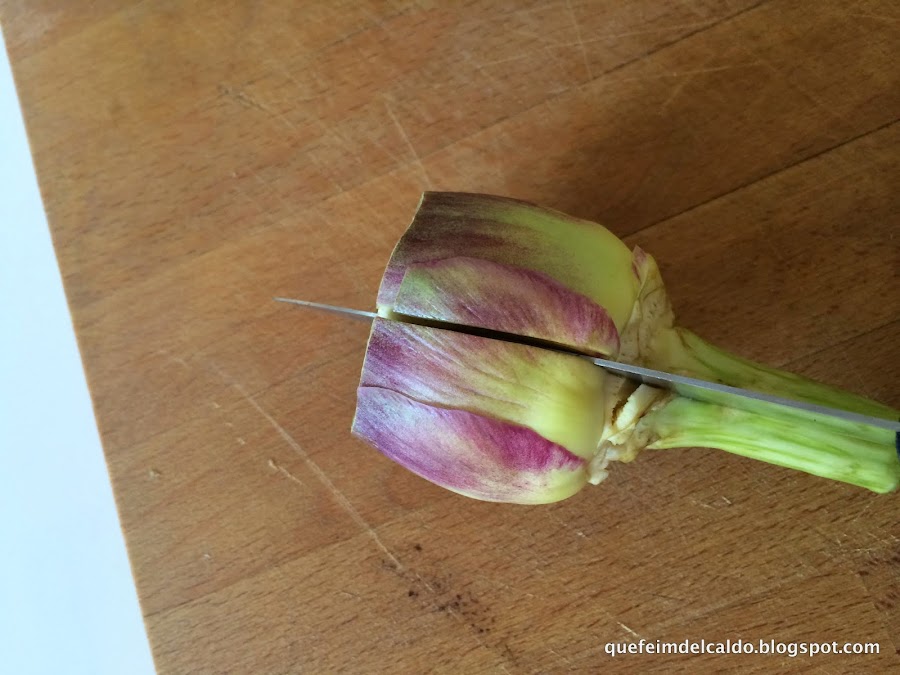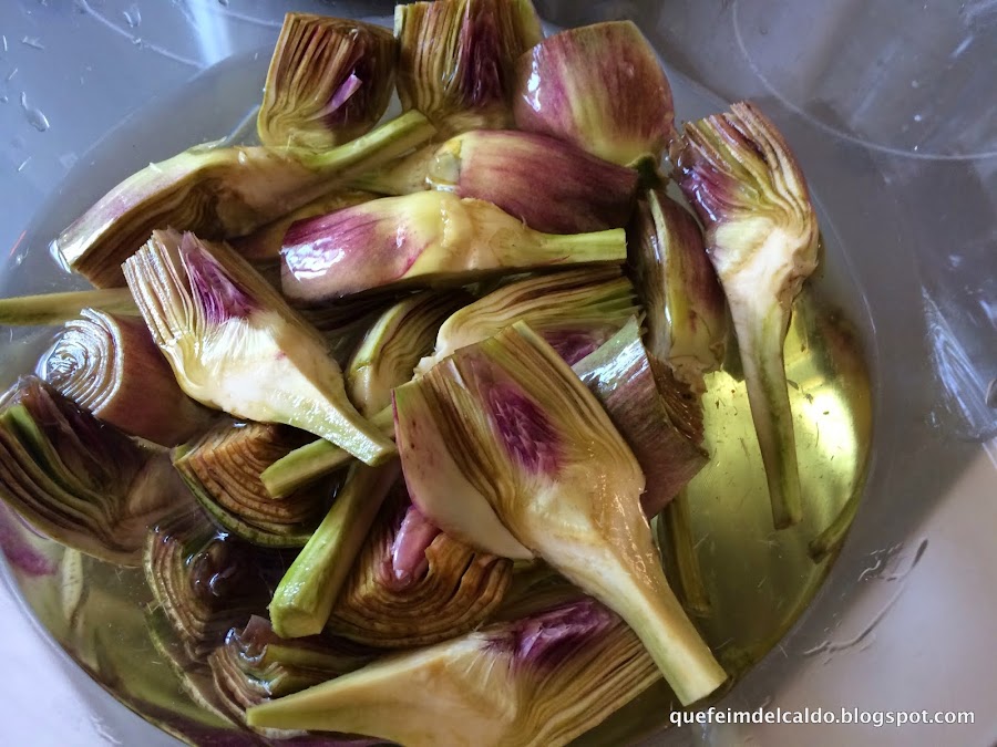 Las ponemos en un bol con agua. YO NUNCA LES PONGO LIMÓN, a veces comemos unas alcachofas que son más un limón que una alcachofa, yo la alcachofa la prefiero negra que con sabor a limón.