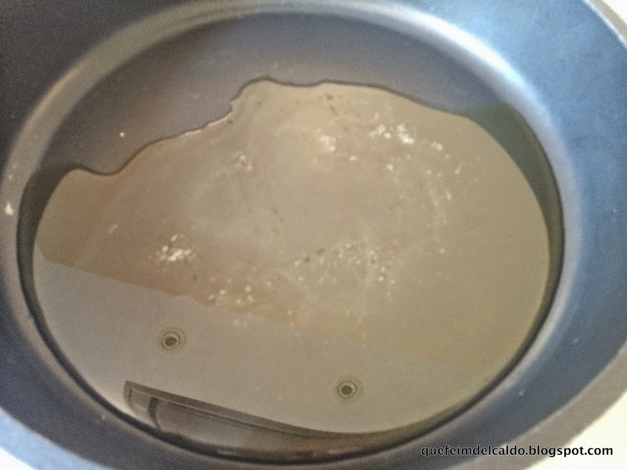 Cuando haya reducido el vinagre y el vino blanco, incorporamos los 500 ml. de caldo de carne, lo dejamos hirviendo durante 2 minutos.