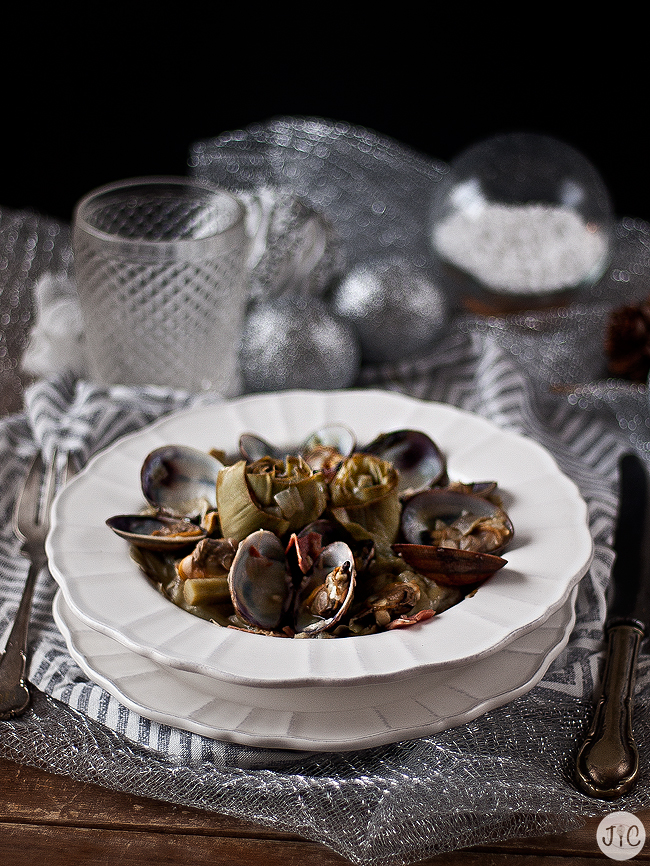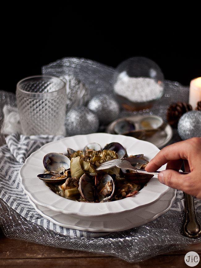 Yo he estado estos días en Navarra, ayer ya me volví a la capital. He estado disfrutando de unos días con los míos, que la verdad es que lo necesitaba, que hacía tiempo que no les veía. Mi madre me propuso una receta que me gustó mucho y por eso me he animado a compartirla con vosotros en el blog: alcachofas con almejas. Al principio yo tampoco acababa de ver la conexión y cómo iban a quedar, pero la verdad es que están buenísimas.