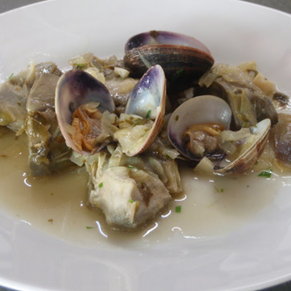 Alcachofas ? almejas ? ajos ? aceite ? perejil ? una guindillita de cayena ? sal ? un limón ? perejil ? vino blanco