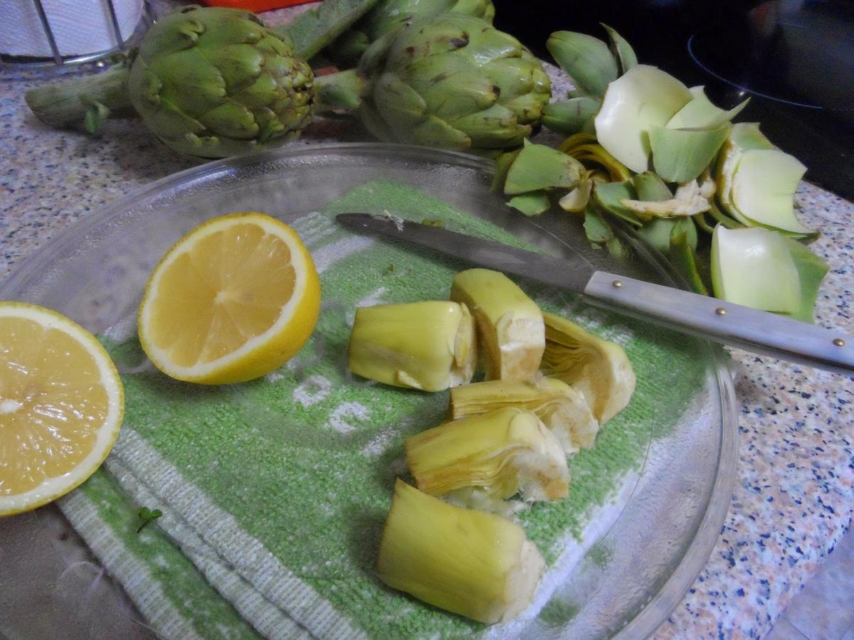 limpiamos y cortamos las alcachofas