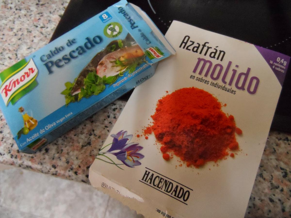 y añadimos el azafran ,un poco de agua