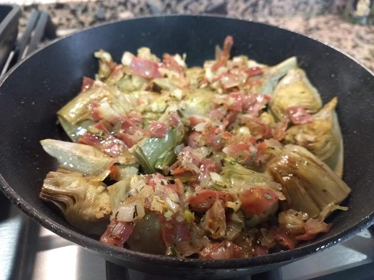 Para 2 personas: 6 alcachofas frescas50 gr de jamón en lonchas finas (mejor ibérico)