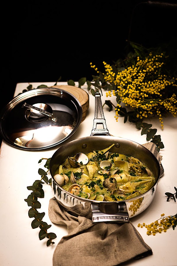 Vuelvo otra semana con una tan receta tradicional como son éstas alcachofas con salsa verde acompañadas en esta ocasión por unos berberechos. Me encanta la cocina de mercado y trato de sacar el máximo partido a los productos de temporada, ideales por estar tanto en su mejor momento a la hora de degustarlas como por el precio.
