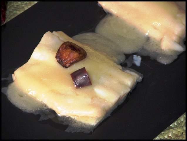Por otro lado preparamos la salsa. En una cazuela plana cubrimos el fondo de aceite y añadimos los ajos cortados por la mitad a dorar, echamos el bacón y dejamos que se cocine. Los ajos puedes quitarlos, pero eso lo dejo a vuestra elección. Agregamos la harina y la freímos brevemente antes de añadir el agua. Una vez ligada la salsa, colocamos las alcachofas en la cazuela y dejamos cocinar durante unos 5 minutos.