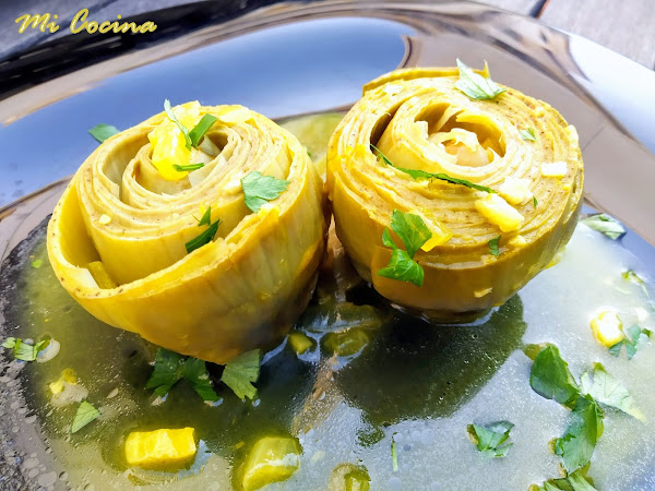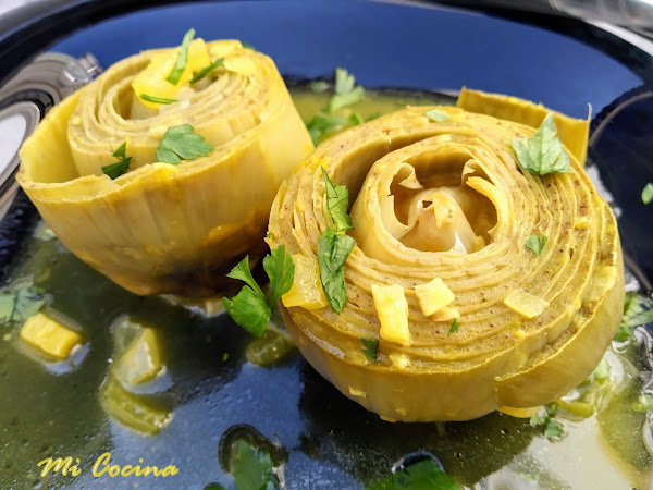 Hoy en “Mi Cocina” la ha introducido una bellísima persona, buena amiga, madre de mi yerno, ella es Reme, quien con sus propias manos ha ido recogiendo éstas “alcachofas” ecológicas de un huerto familiar situado en el propio Valle del Guadalhorce.