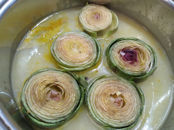 Y con éstas alcachofas malagueñas, no podía sino preparar una receta malagueña que se pierde en el tiempo, en la memoria de mis mayores, ALCACHOFAS EN AMARILLO