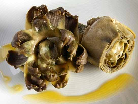 Aunque la mejor manera de obtener los mayores beneficios de verduras y hortalizas es consumirlas crudas, hay algunas, como las berenjenas y las patatas, que pueden resultar tóxicas si no se las cocina previamente. Es sabido también que el calor de la cocción destruye algunas de sus vitaminas, especialmente la C, y en menor medida las del grupo B, y que con la cocción se pierden las sales minerales ya que se disuelven en el agua. Una solución para evitar la pérdida de vitaminas es someter a la menor cantidad de calor y durante el menor tiempo posible estos alimentos, y para evitar la pérdida de minerales utilizar la cocción al vapor, la plancha o el asado. (Y nunca tirar el agua de cocer verduras. Podemos utilizarlo para preparar salsas, sopas, cremas... ) El horno, el microondas y la plancha, al evitar la pérdida de sales minerales respetan además el sabor por lo que el asado resulta un método muy adecuado de prepararlas. Viene todo esto a cuento de la receta de hoy: tan sencilla como espectacular. El asado en papillote sólo requiere envolver los ingredientes con algún material resistente al calor, ponerlos en el horno y dejarlos tranquilos hasta que estén a punto. Personalmente prefiero el papel llamado de horno, ya que no está claro que el aluminio usado para cocinar no resulta perjudicial a la larga. En cualquier caso, estas alcachofas resultan irresistibles, tiernas y jugosas, con todo su aroma y sabor. Un poco del mejor aceite de oliva y una pizca de sal y tendremos un plato de lujo. A la hora de servirlas, puede optar por quitar previamente las hojas exteriores o dejarlas enteras para que cada comensal las rechupeteea su gusto según las va retirando.
