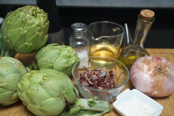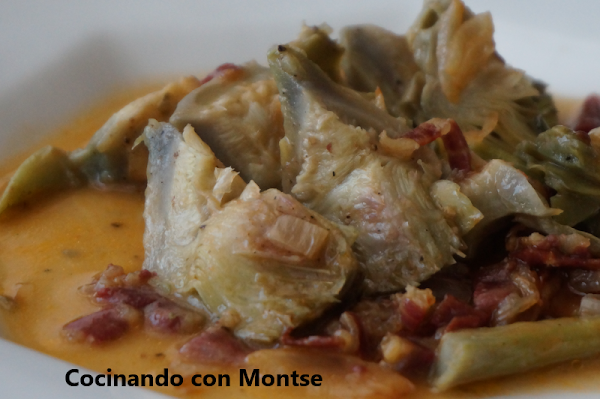 Receta de alcachofas en salsa con jamón