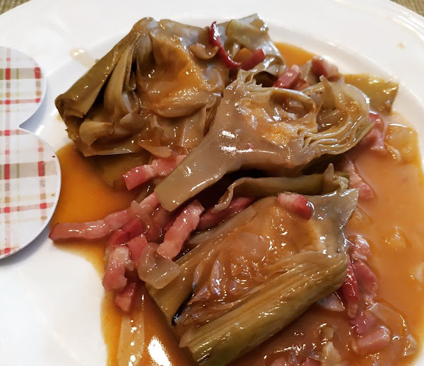 Cancelar, incorporar las alcachofas limpias y partidas por la mitad, salpimentar, cerrar tapa y válvula y programar menú cocina (modelo D), menú guiso (modelos E, F, G y H) 130° presión alta 8 minutos.