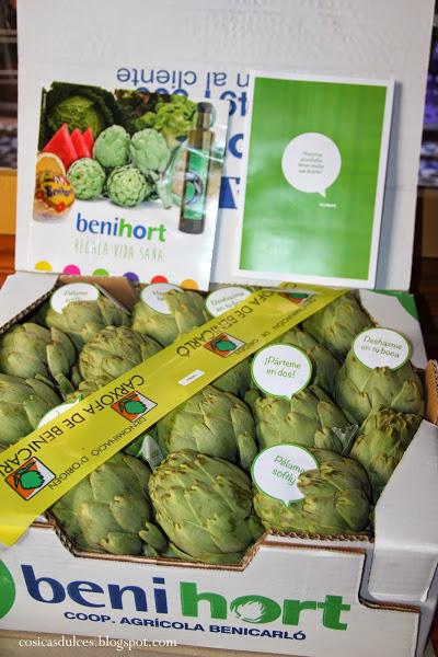 Para la elaboración de esta receta he utilizado unas estupendas alcachofas con Denominación de Origen Protegido de Benicarló de Benihort, Cooperativa Agrícola de Benicarló (Castellón).