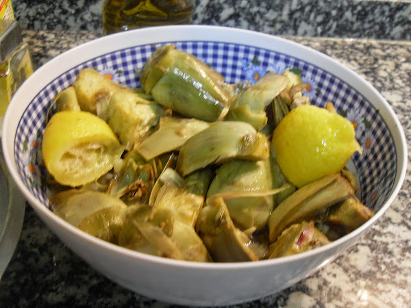 Limpiar y lavar las alcachofas, quitando las hojas exteriores más duras.