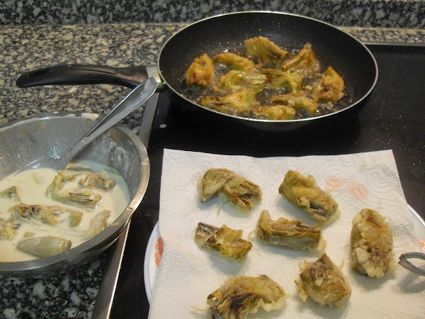 Freír con el aceite bien caliente por tantas. Y colocar sobre un plato con papel absorbente para quitar el exceso de aceite.