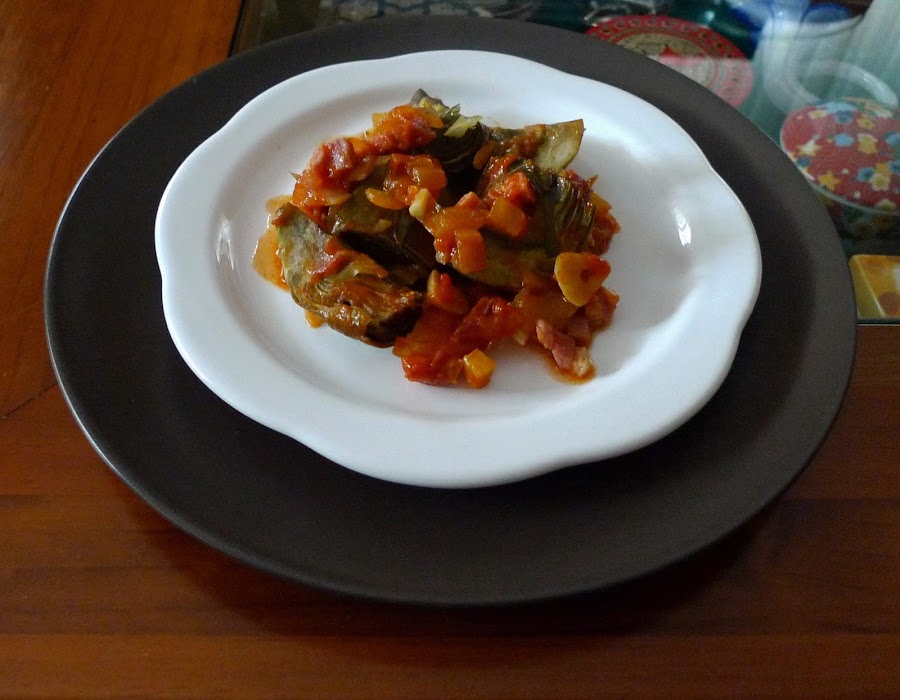 A menudo, los platos de elaboración más sencilla nos sorprenden por el resultado que se consigue. En éste caso, unas alcachofas , un poco de jamón, cebolla y tomate lo hacen todo. Eso sí, cocinado con cariño y lentamente.