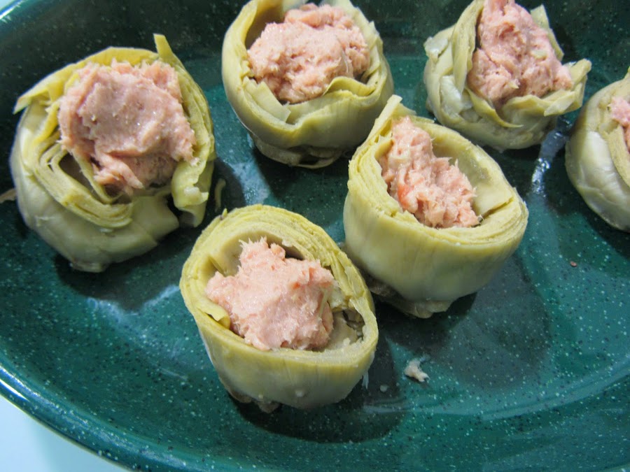 Hace poco hice otra versión de alcachofas con salmón, también bastante buena, pero éstas han gustado más en casa (a mí me gustan las dos, jajajaja).