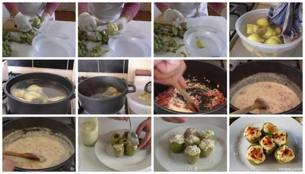 Una vez que ya tenemos las alcachofas y el relleno solo nos queda rellenarla.