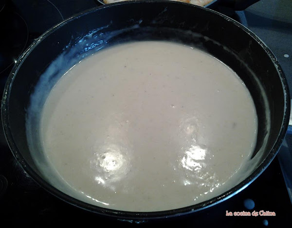 Verter lentamente el caldo de pescado y cocer sin dejar de remover, hasta obtener una salsa cremosa.