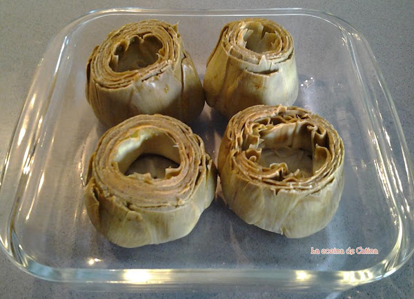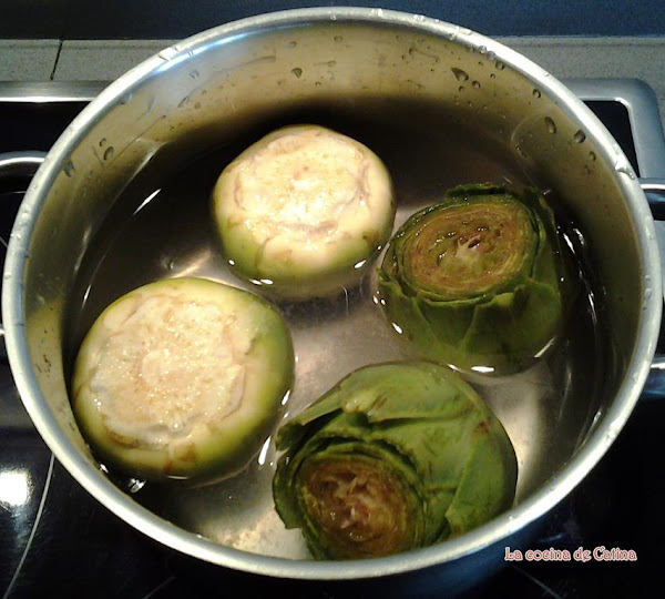 Lavar, quitar el tallo, las hojas exteriores y el corazón de las alcachofas. Rociar con limón y cocer en agua con sal hasta que estén tiernas.