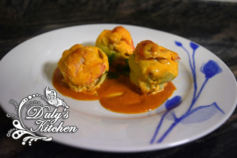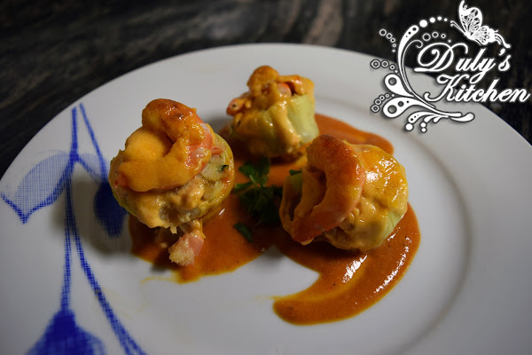 Aprovechando que me han dado unas alcachofas os traigo una receta muy fácil y rica. Alcachofas rellenas de marisco, con una base de salsa de marisco y gratinadas. Otra forma de comer verdura y llenas de sabor.