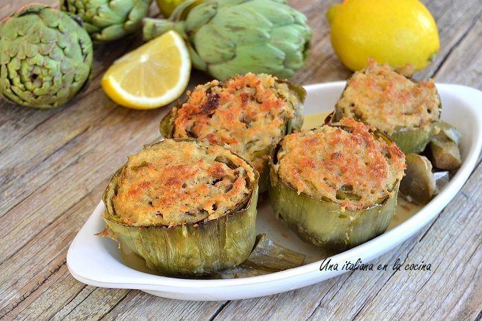Esta receta la preparo a menudo, recién hechas estas alcachofas quedan verdaderamente deliciosas porque la parte superior queda crujiente. Al día siguiente siguen siendo muy ricas pero ya han perdido ese toque crujiente que las hace más especiales. Puedes personalizar esta receta añadiendo en el relleno trocitos de queso que se funda, te aconsejaría un buen provolone que además de fundir bien aporta un saborcito muy rico, o unos taquitos de jamón.