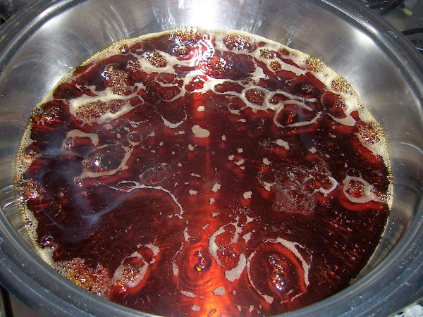 En una cacerola ponemos el vaso de vino al fuego y en cuanto rompa a hervir añadimos el paté que nos ha sobrado de rellenar las alcachofas, mezclamos bien y dejamos reducir un par de minutos.