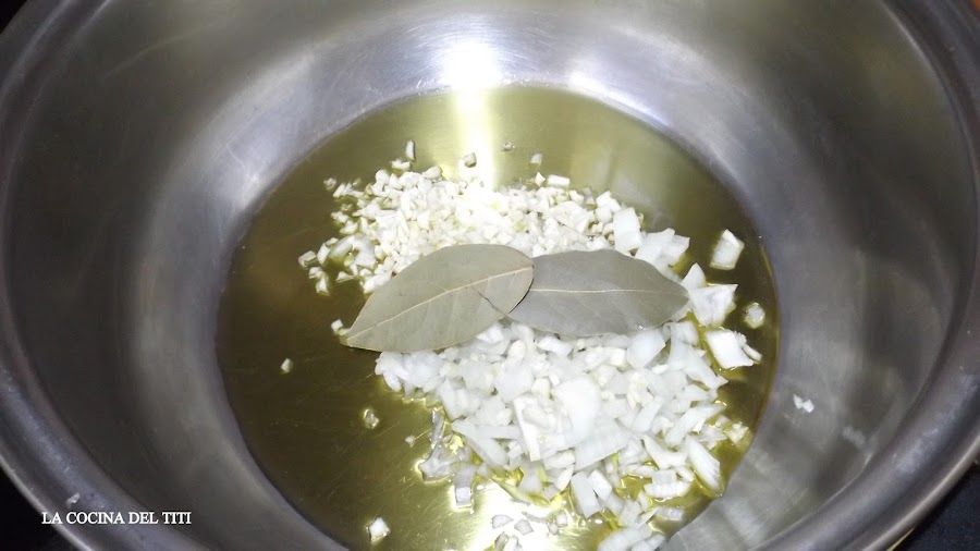 2º Cortamos la cebolla y los ajos finamente. Pondremos en una olla a pochar.