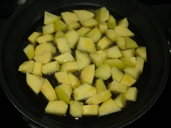 Las patatas se pueden realizar de dos formas diferentes, en este caso simplemente, las he pelado, las he salado y las he frito. Aunque, si queréis dedicarles más tiempo, podéis cocerlas con piel y cuando estén blandas sacarlas, esperar a que se enfríen, pelarlas, cortarlas en trozos y freírlas hasta que estén doradas. Las sacáis a un papel absorbente para retirar el exceso de aceite.