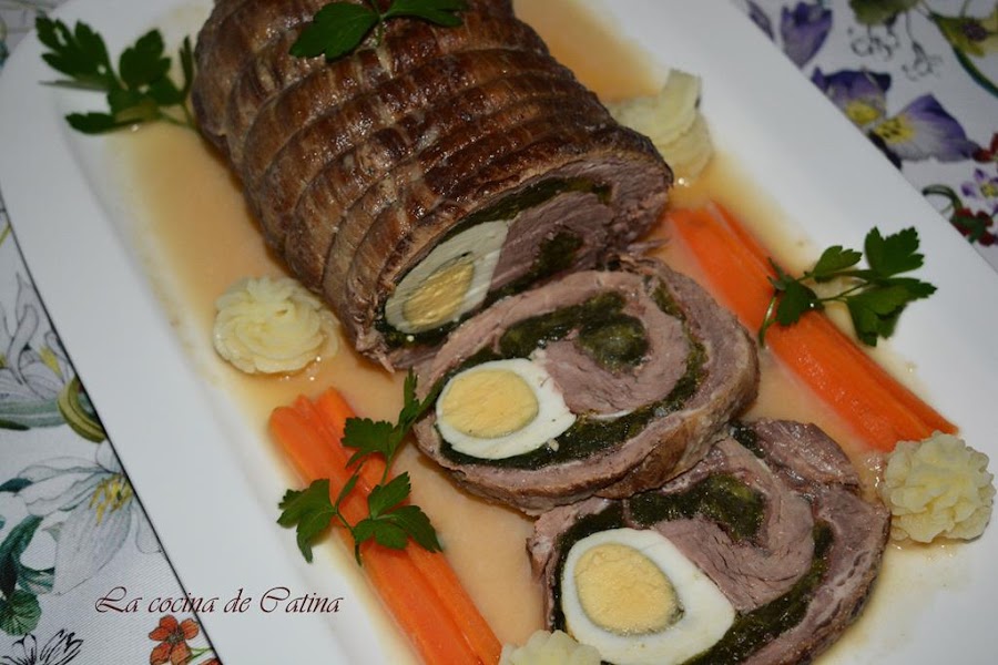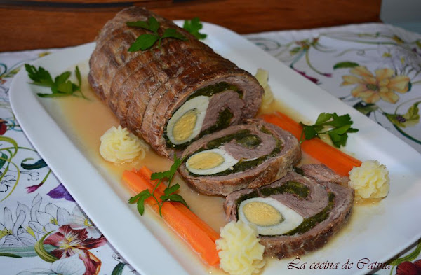 Hoy he cocinado un plato de lujo, una carne rellena que esta exquisita, que si lo cocinamos la víspera del día que la vamos a consumir todavía está más rica.