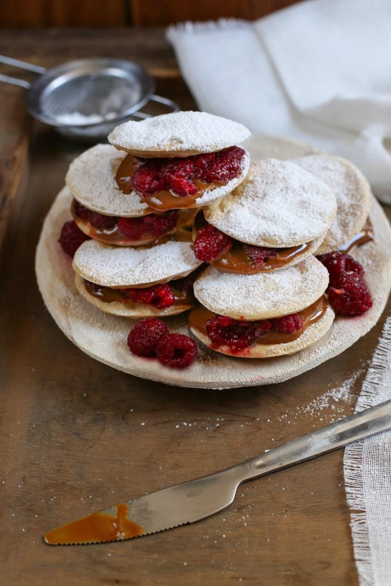El fin de semana preparé estos alfajores para compartir con unos amigos y además de rellenarlos con manjar, les agregué frambuesas ¡todo un éxito!