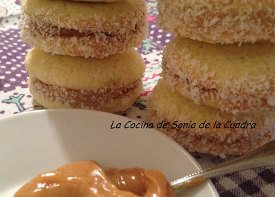 Una vez fríos, pegar los alfajores con dulce de leche y rebozar los laterales con coco rallado.