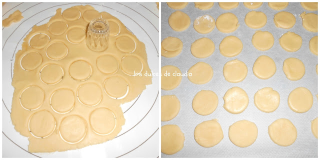 Transcurrida las dos horas, estirar la masa y formar las galletitas con un cortador redondo, poner encima de una placa forrada con papel de horno.