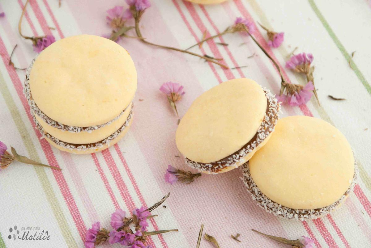 9.- Una vez fríos, rellenamos los alfajores con dulce de leche y rebozamos con coco para conseguir los alfajores más clásicos.