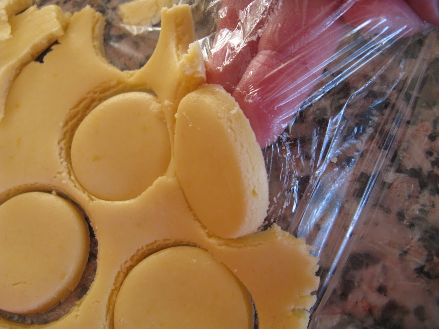 Después extendemos sobre la forma para hacer las formas redondas, para que sea más fácil despegar las galletas y que no se rompan ni deformen lo hice entre dos papeles film, dejamos 1 cm de grosor más o menos, retiramos el film de arriba y mirar que bien despegan después